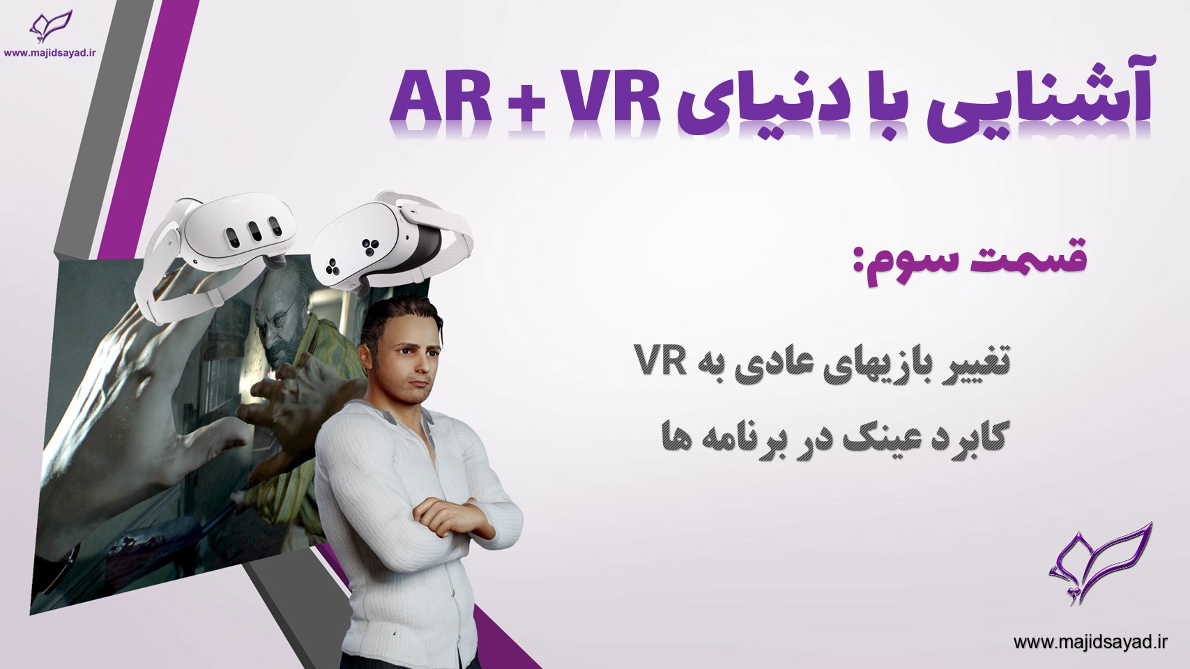 تو این قسمت یاد میگیریم که بعضی از بازیهای کامپیوتر که VR نیستند رو هم میشه تبدیل به VR کرد. بعد میریم سراغ یکی از کاربردهای واقعیت مجازی در صنعت ساختمان؛ جایی که میتونی قبل از ساخته شدن، داخل خونه قدم بزنی و همه جزئیات رو ببینی. و در ادامه با کاربرد عینک در دنیای بازیسازی و انیمیشنسازی آشنا میشیم؛ جایی که میتونی کاراکترهای مجازی رو کنترل کنی و یا انیمشین بسازی!
